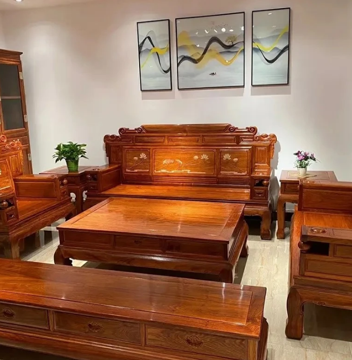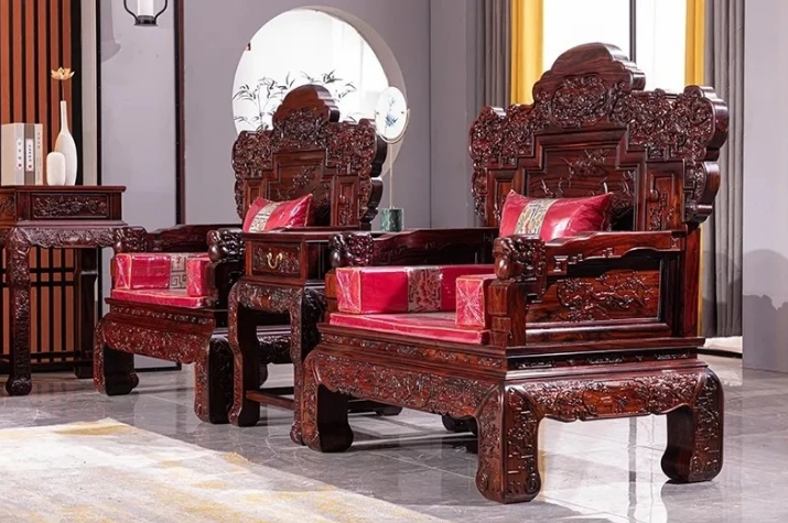 第3种是新中式风格的家具,其实我不止一次听到很多年轻人说,我不喜欢红木家具款式太老气了,其实有一种风格就是新中式风格,是非常符合一些年轻人的审美需求的,新中式家具它有什么特点呢?首先它的款型非常的新颖,将坐垫加上沙发的造型配在一起,很有时尚的感觉,新中式家具中其实沙发的主体不是最大的亮点,而是木头用的多与少,它主要讲究的就是整体的器型,还有软包配饰的搭配,所体现出来的那种超前美感,上面给大家讲的这几种风格的红木家具,大家现在都应该清楚了吧,可以根据自己喜欢的来确定家里的装修,首先你要看好喜欢的家具,这样的你的家里面整体搭配起来,才能够达到你想要的效果。